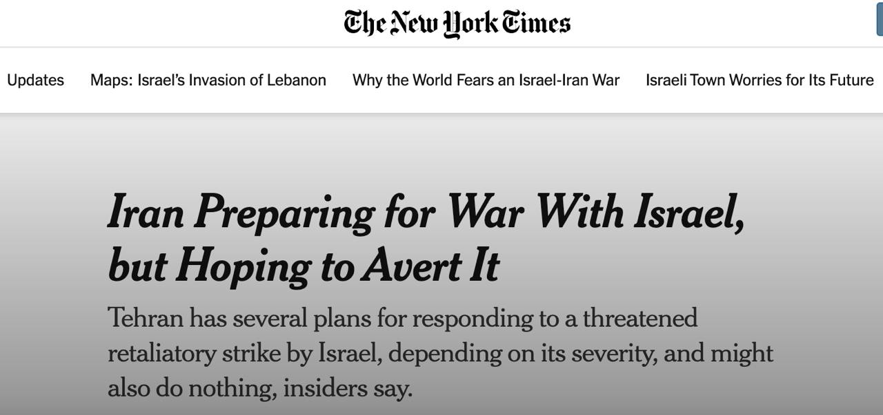 Lại là báo Mỹ suy diễn rồi. Iran đã nói sẽ trả đũa bất cứ hành động tấn công nào của Israel. Trong mắt Iran, đợt tên lửa đầu tháng 10 là trả đũa cho hành động trước đây của Israel, nên hai bên đang hoà.