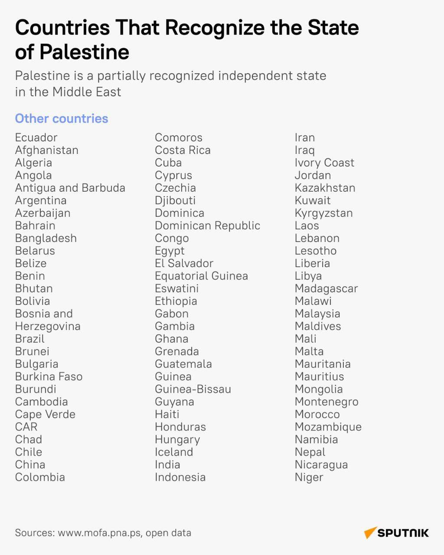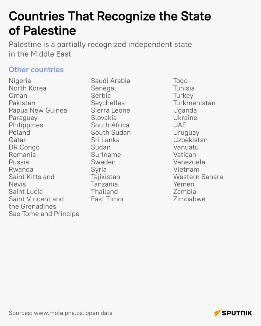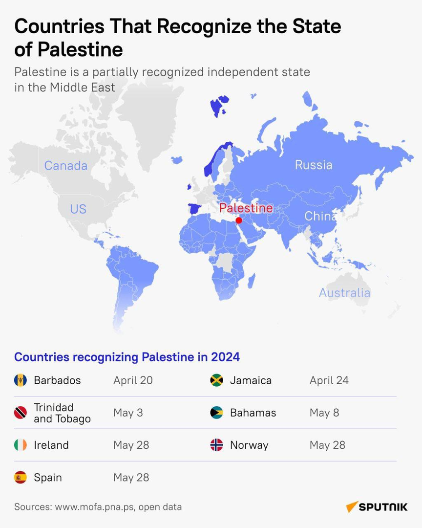 Hãy xem đồ họa thông tin của Sputnik để biết quốc gia nào đã công nhận Nhà nước Palestine.