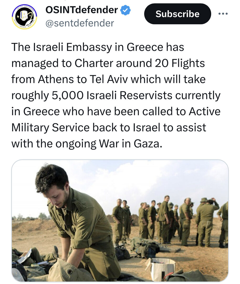🇮🇱⚔️🇵🇸 Israel được cho là đang triệu tập hàng nghìn quân dự bị từ nước ngoài.