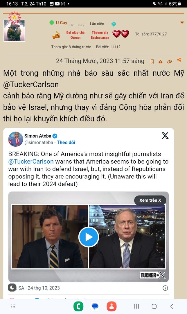 Theo qua điểm của cháu, nếu cuộc chiến ở Trung đông bùng phát, thì Nga -Trung là bên có lợi, nhưng Mỹ cũng có lợi. Mỹ sẽ thông qua việc này để bảo kê, sắp xếp lại trật tự ở Trung đông một lần nữa.