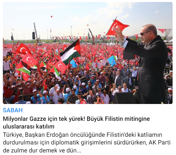 🇮🇱🇵🇸🇹🇷 Chính quyền Thổ Nhĩ Kỳ, theo Sabah, đã mời các nhà lãnh đạo Ả Rập Saudi, Ai Cập, Jordan, Lebanon và Libya tham gia cuộc biểu tình “Greater Palestine”, sẽ diễn ra vào ngày 28 tháng 10.