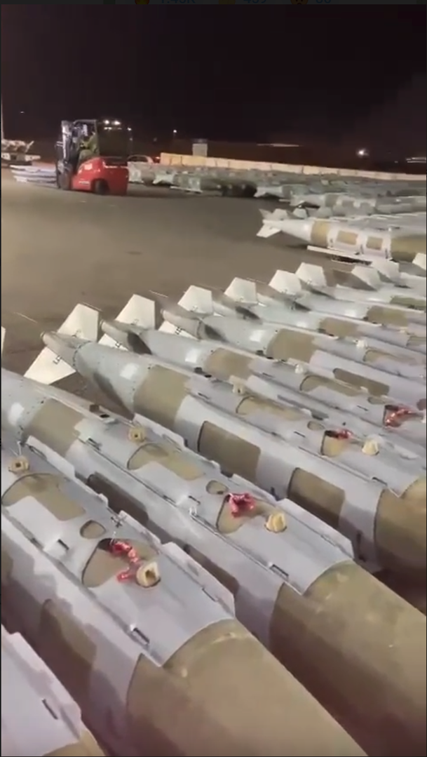 Hàng trăm quả bom JDAM có thể điều khiển được tại một trong những căn cứ không quân của Không quân Israel đang chuẩn bị được thả xuống Dải Gaza. @milinfolive
