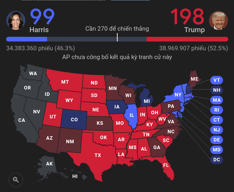 🟥 Michigan: 53,7% số phiếu bầu (11% số phiếu bầu đã được xử lý).
