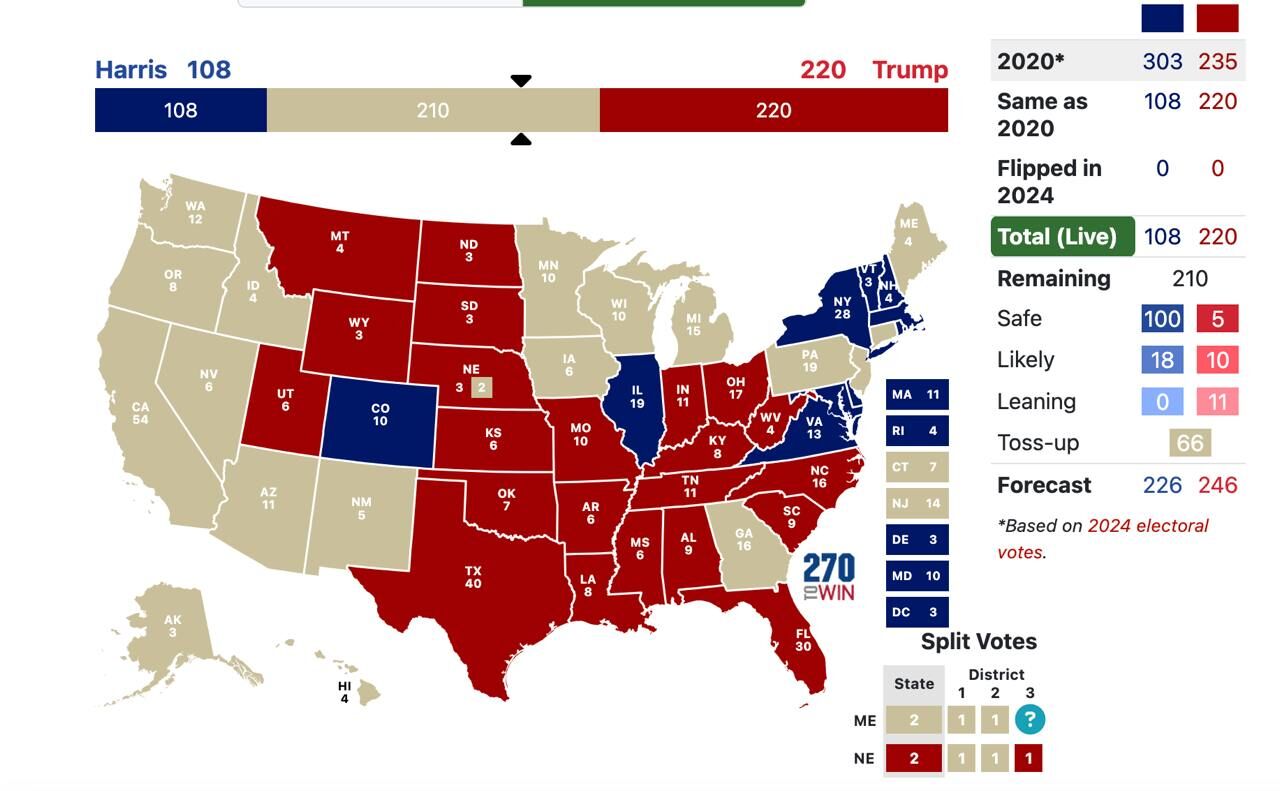 Cụ đại tá giờ đang có số phiếu đại cử tri gấp đôi mợ Harris 198/99.