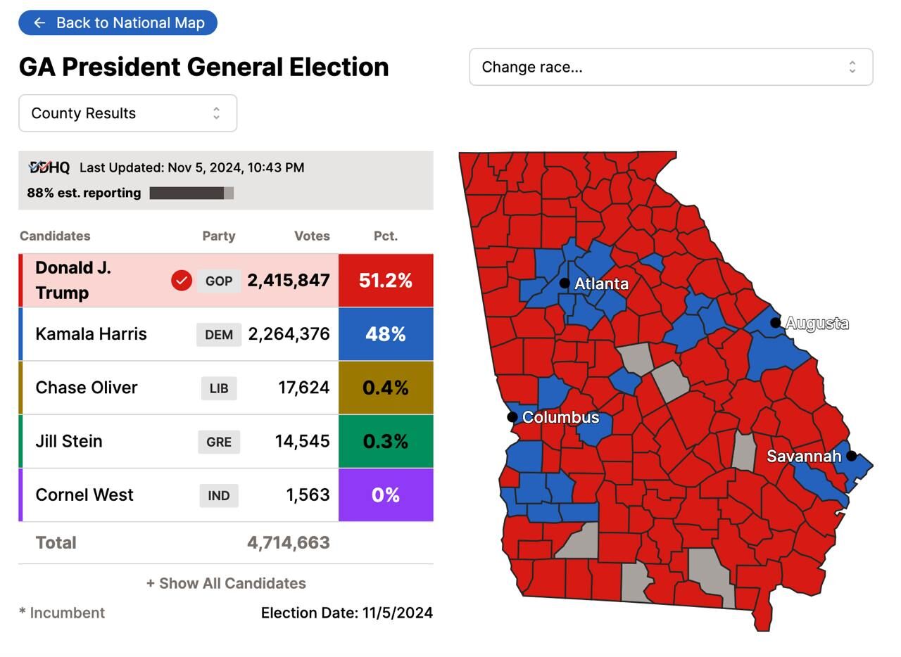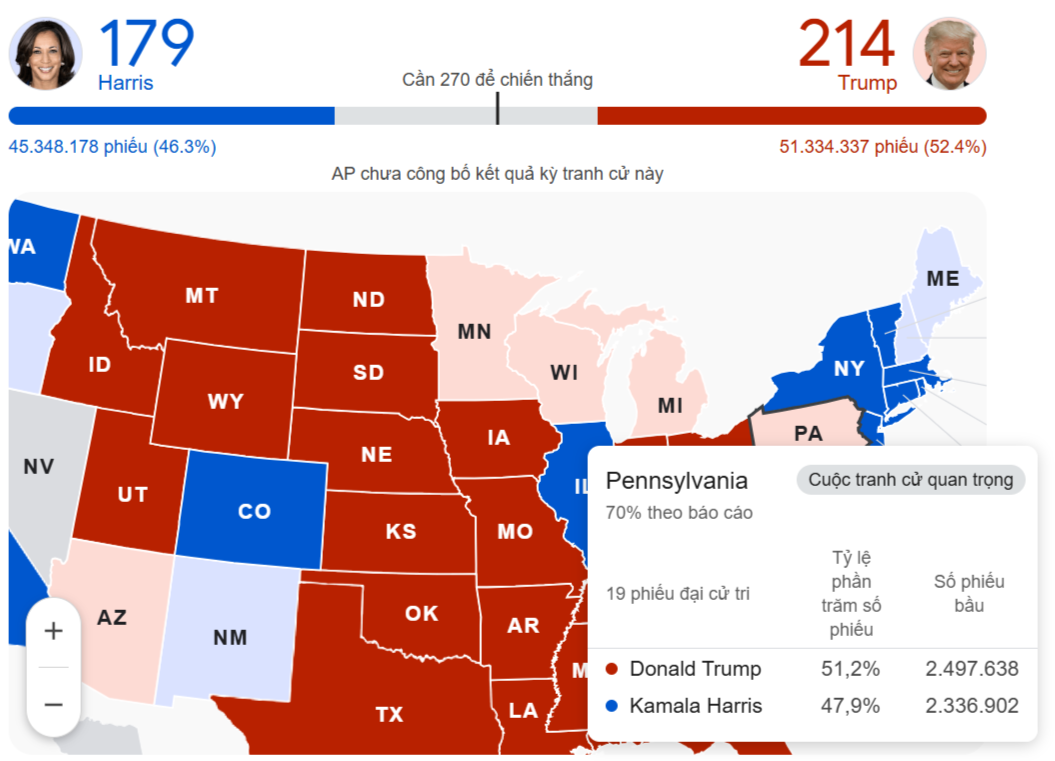 Trump có thể đạt được con số kỳ diệu bằng cách giành chiến thắng ở Georgia và Pennsylvania hoặc bằng cách giành chiến thắng ở Georgia, Michigan và Wisconsin. Ông cũng có thể giành chiến thắng bằng cách giành chiến thắng ở Wisconsin và Arizona, cũng như các tổ hợp khác liên quan đến Nevada.