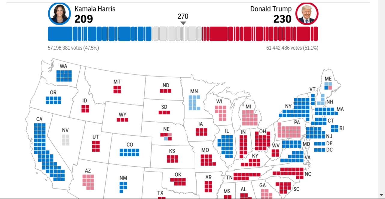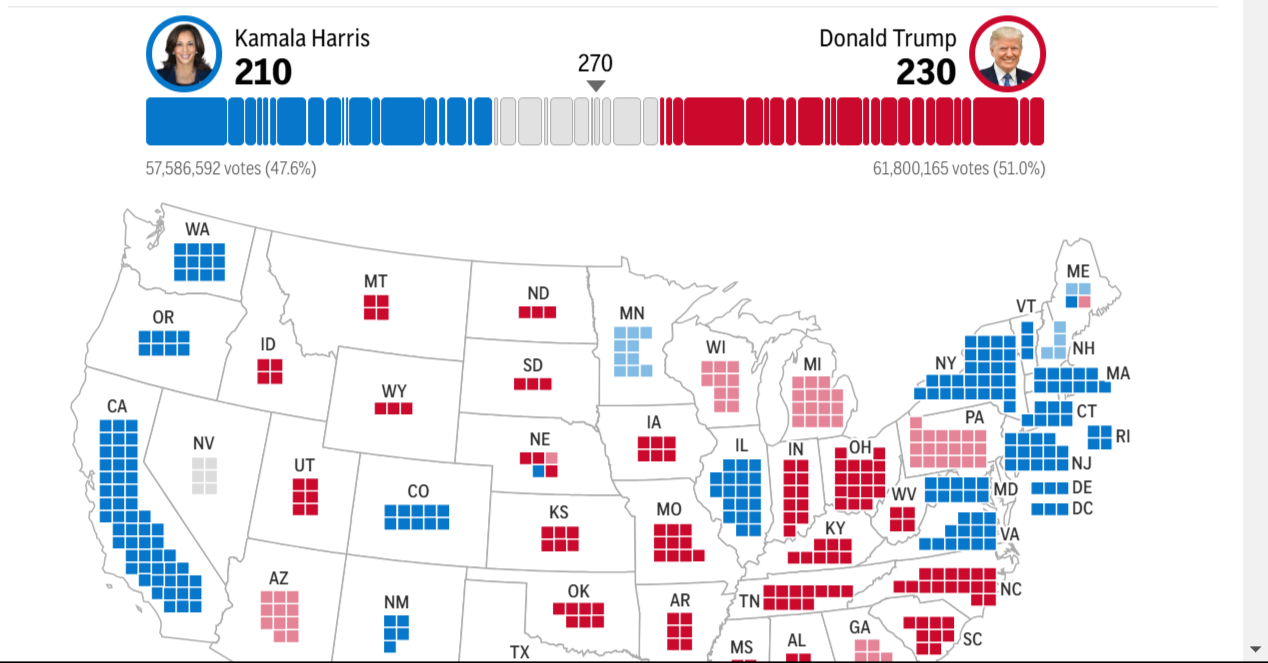 Hai bang PA và WI cụ đại tá đang dẫn mợ Harris không nhiều. Ăn được 2 bang này nữa là cụ đại tá đắc cử. Mợ Harris cần phải điên cuồng bám đuổi.