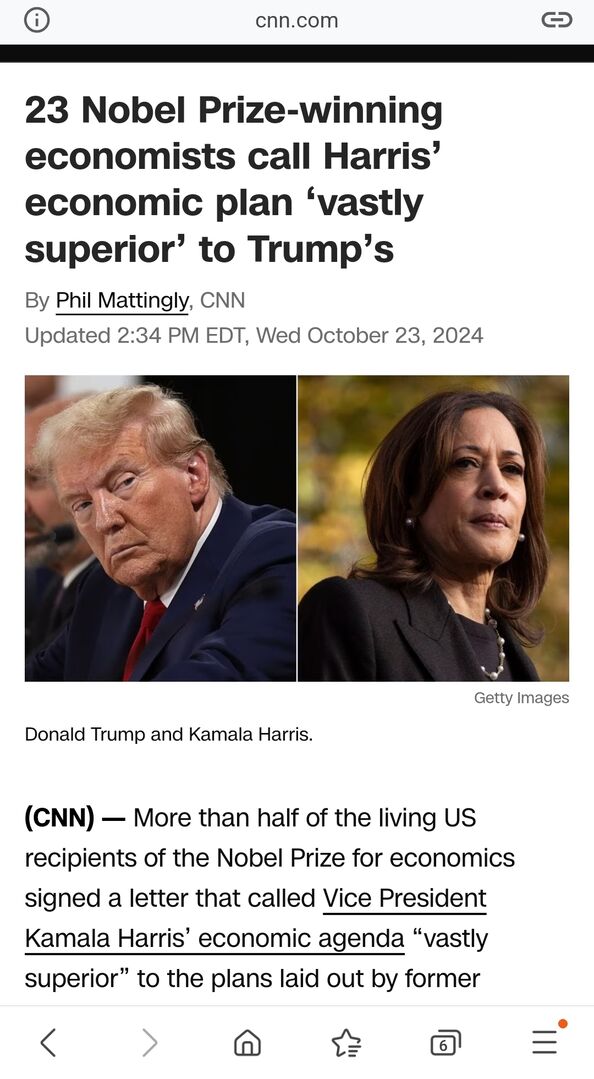 Điểm sáng kinh tế của Biden-Kamala là trong 4 năm qua, tài sản các tỷ phú ở Mỹ đã tăng gấp đôi. Có lẽ đây là lý do những người đoạt giải Nobel ủng hộ Kamala và ký vào thỉnh nguyện thư nói rằng chính sách kinh tế của Kamala tốt hơn của Trump. Cũng đúng thôi, ăn cây nào, rào cây đó.