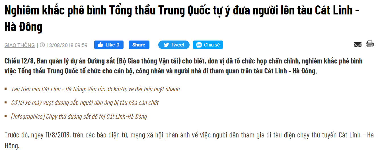 @vocan Liên quan đến việc đưa người dân lên đi thử, cụ @Leu Leu bên OF có lật lại được link phê bình Cát Linh Hà Đông