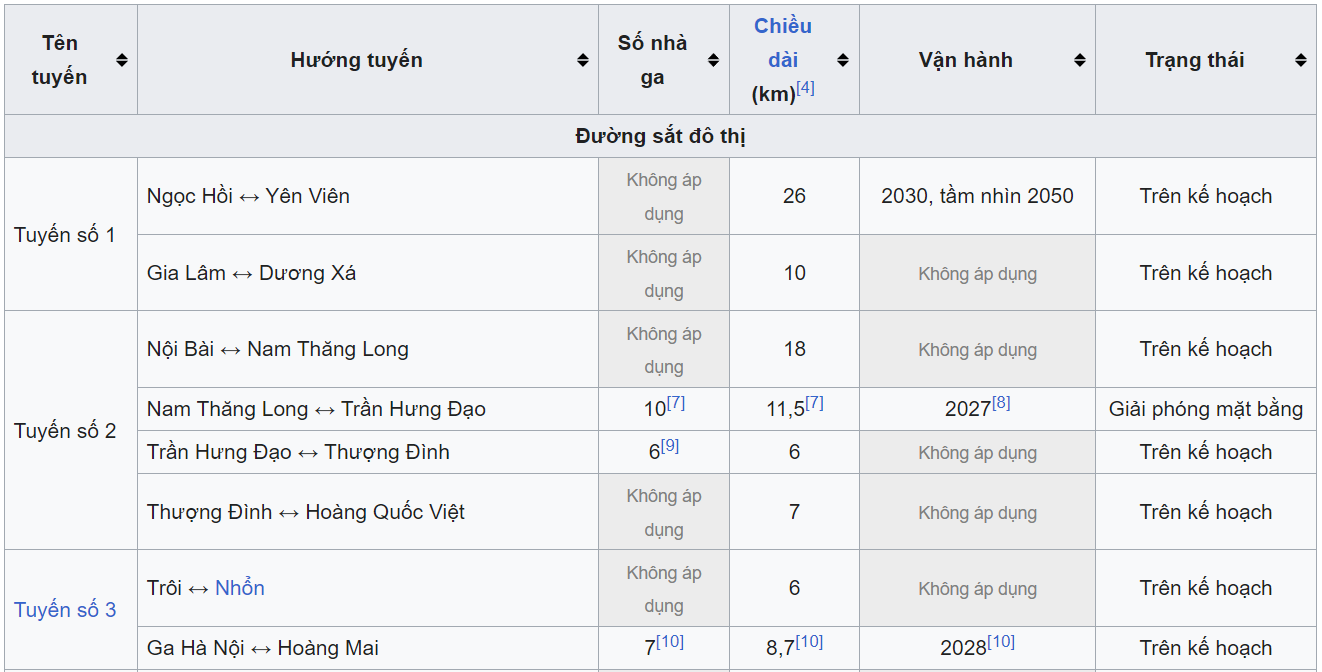 Dự án trên giấy được quy hoạch cho Hà Nội và HCM khá nhiều, hiện tại mới có tuyến Cát Linh Hà Đông đi vào khai thác thương mại.