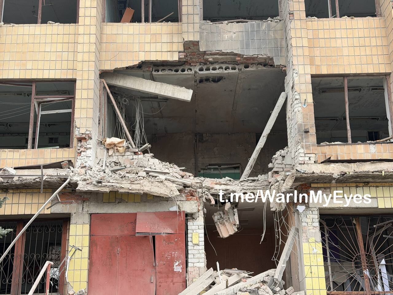 Hậu quả của việc hai máy bay không người lái tấn công cánh cố định đâm vào tòa nhà Bưu điện Donbas ở Mangush tối qua