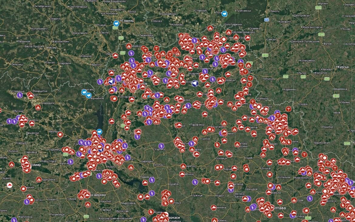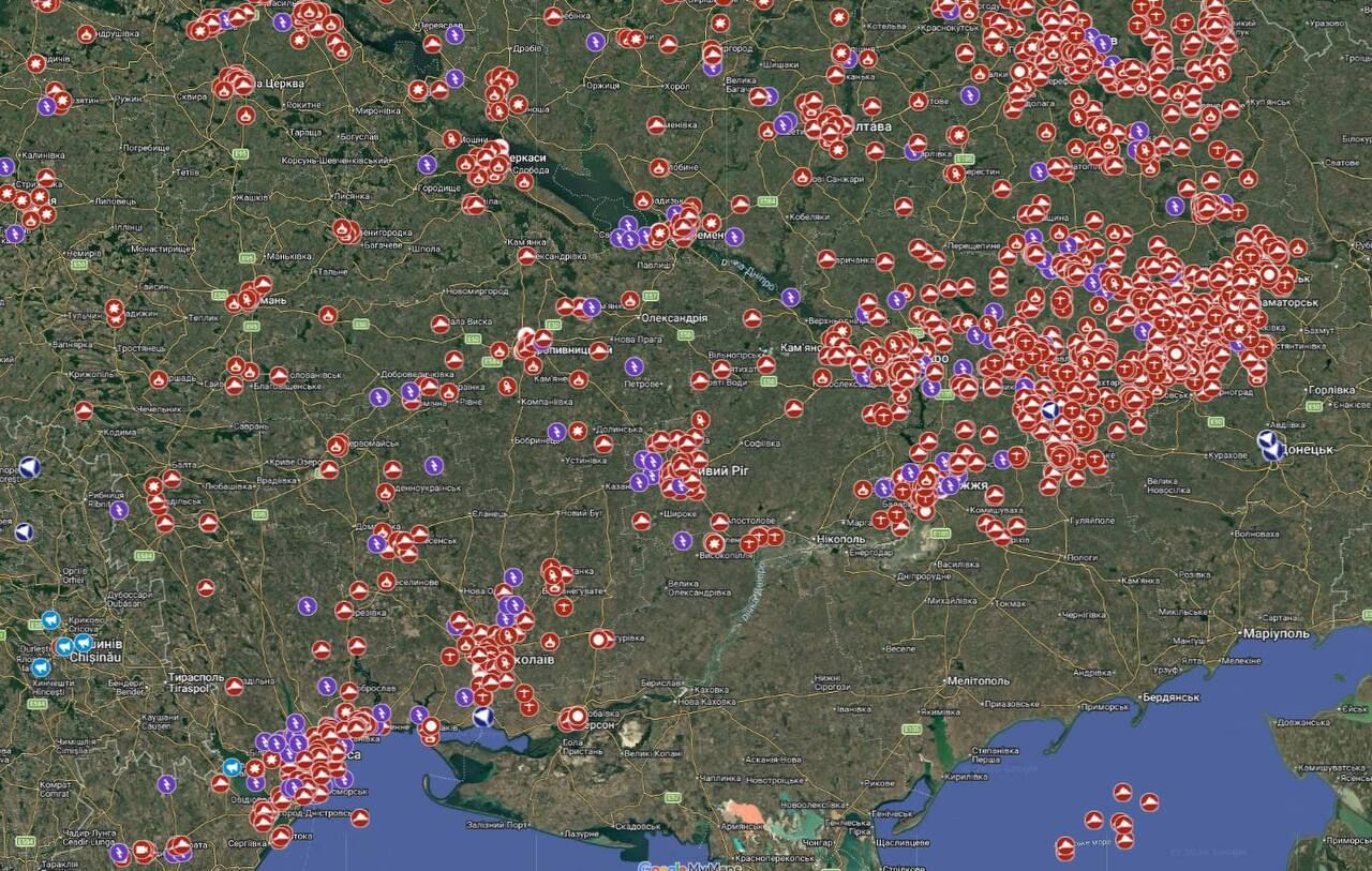 Bản đồ các vụ xâm nhập của UAV Geran-2/3/BM-35 và các loại UAV khác vào Ukraine trong chín tháng qua.