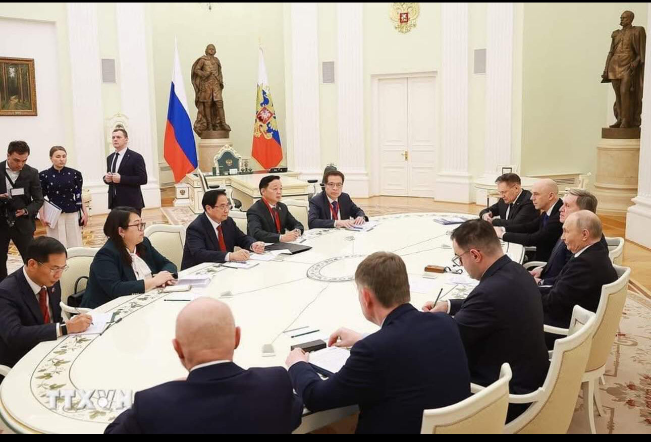 Tổng thống Vladimir Putin gặp gỡ lãnh đạo Việt Nam Phạm Minh Chinh trong cuộc hội đàm song phương