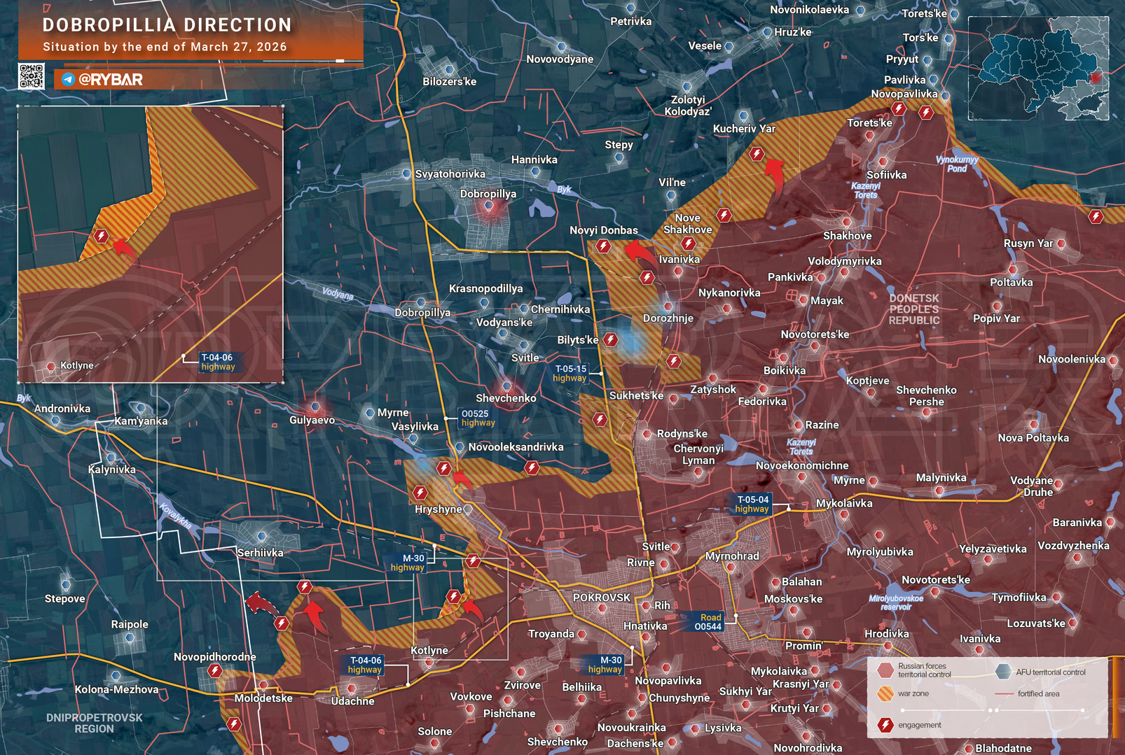 Tại khu vực Hulyai-Polye, quân đội Nga đang tiến công ở khu vực Hulyai-Polye và khu vực Rozhdestvenskoye-Verkhnyaya Tersa. Giao tranh đang diễn ra ở phía tây Ternovatoye. (Hình 1.2)
