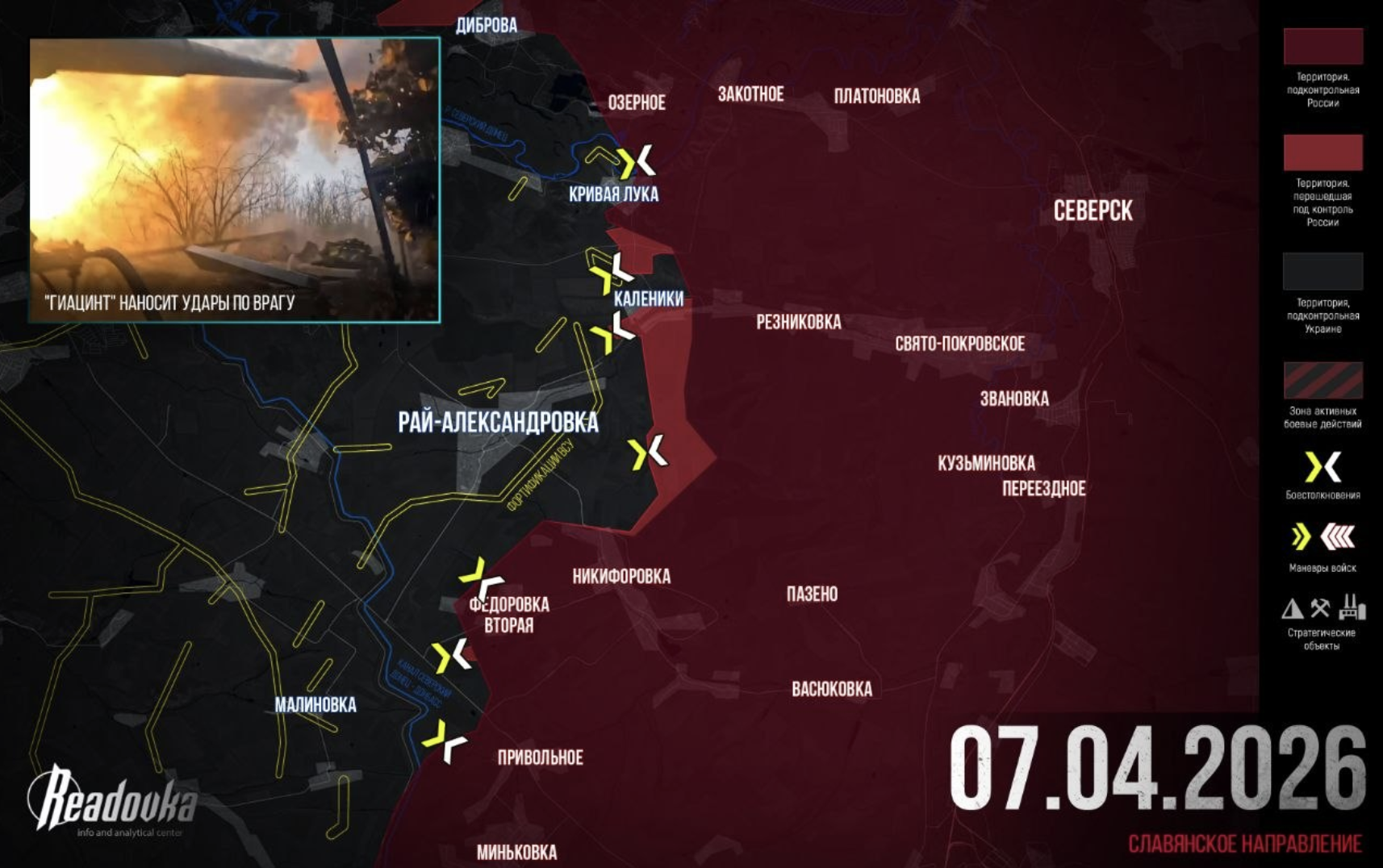 Các đơn vị Nga theo hướng Slovyansk đang gia tăng áp lực và tiến công dọc theo tuyến Krivaya Luka-Kaleniki-Nikiforovka, đồng thời làm suy yếu sự ổn định của các tuyến đường tiếp tế của Lực lượng vũ trang Ukraine. Sau khi chiếm giữ một số khu vực, trọng tâm tấn công đang chuyển sang các tuyến đường vận chuyển qua Nikolayevka và Orekhovatka, cũng như các điểm vượt sông Seversky Donets, làm gián đoạn liên lạc trong khối Ukraine và gây khó khăn cho việc chuyển giao lực lượng dự bị.