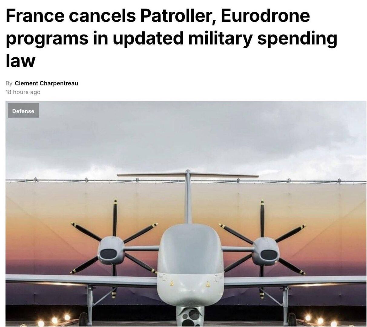 🇫🇷— Pháp chính thức ngừng tài trợ cho chương trình Eurodrone đa quốc gia trong kế hoạch chi tiêu quân sự cập nhật giai đoạn 2024-2030, chấm dứt sự tham gia của nước này vào dự án.