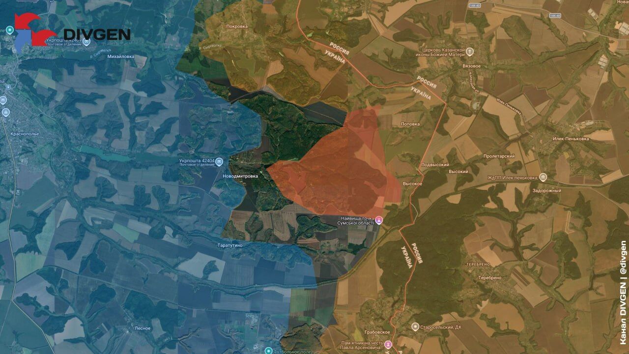 Tại huyện Krasnopolsky, Lực lượng vũ trang Nga đang chiến đấu giành Novodmitrovka. Có một số tiến triển gần Pokrovka. (Hình 4.)