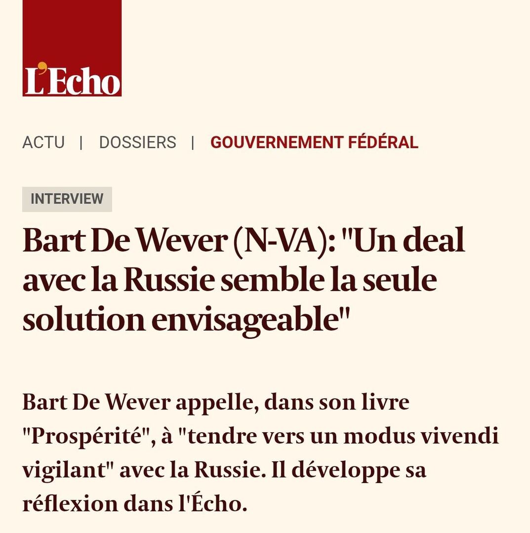 Liên minh châu Âu nên nhận được ủy quyền từ các quốc gia thành viên để đàm phán với Moscow, vì các phương pháp gây áp lực hiện tại không hiệu quả, ông Bart De Wever tuyên bố.