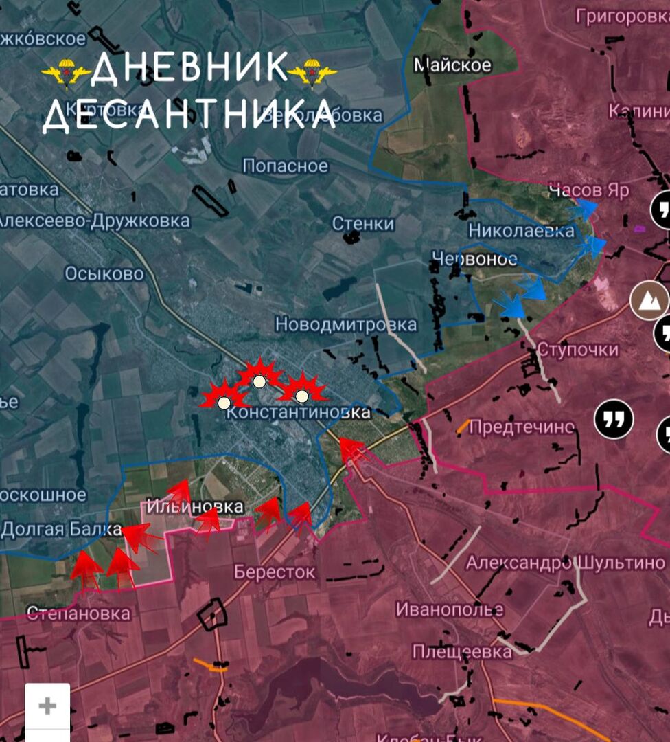 Tại Konstantinovka, quân đội của chúng ta đang chiến đấu trên các tuyến tiếp cận từ phía tây và phía nam.