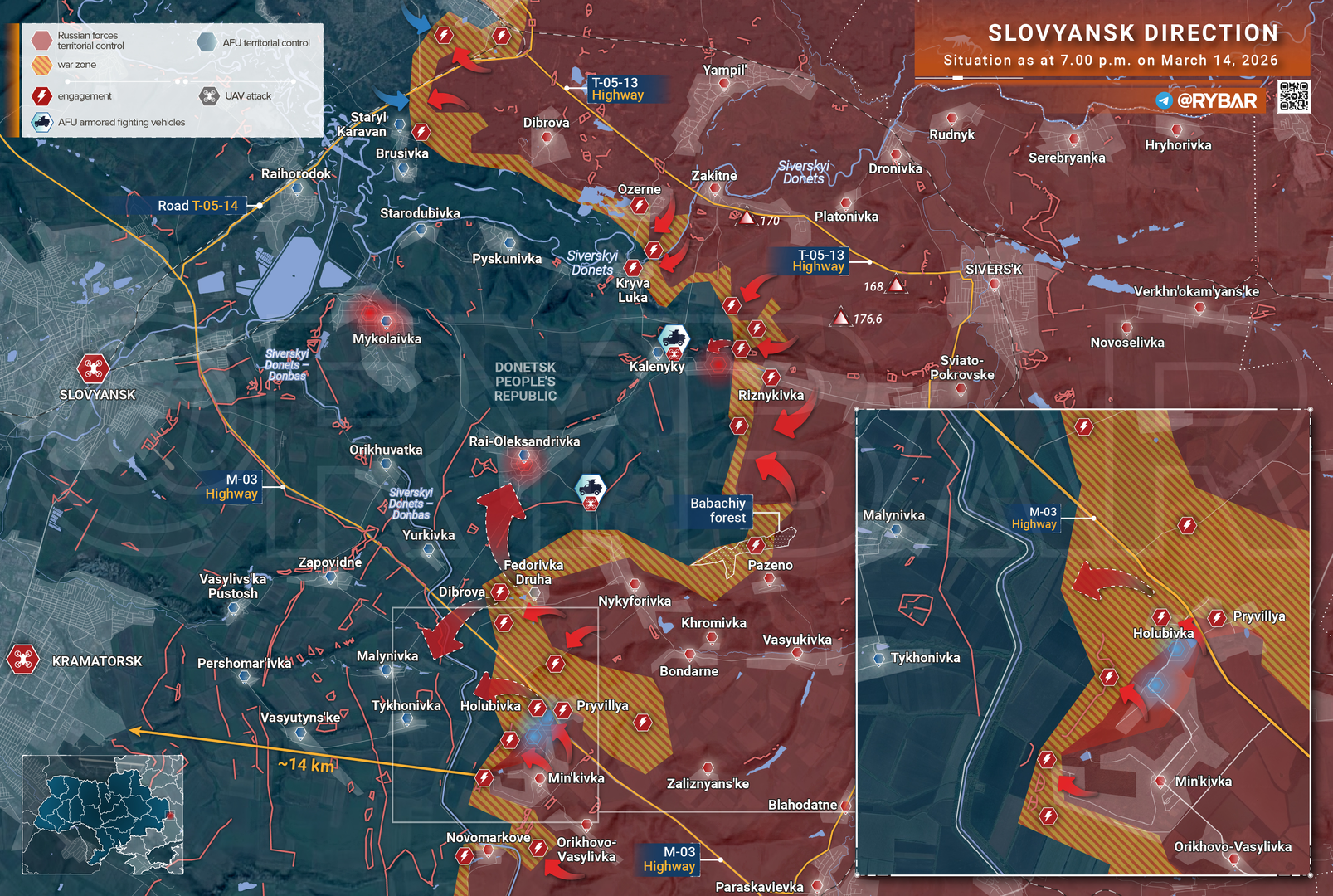 ➡️Theo hướng Slavyansk, lực lượng Nga đang tấn công về phía cụm đô thị Slavyansk-Kramatorsk, tiến về phía bắc dọc theo đường cao tốc M-03.