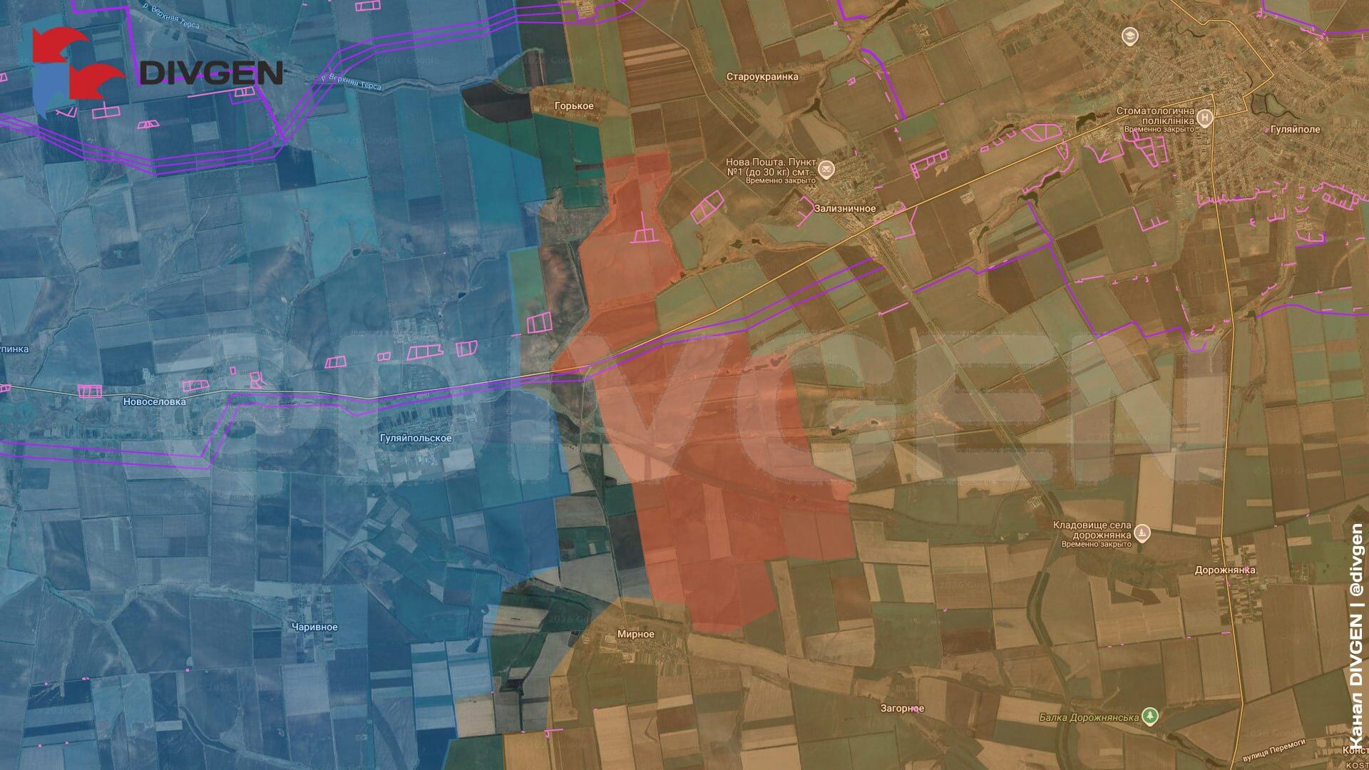 Tại khu vực Hulyai-Polye, quân đội Nga đang tiến về Hulyai-Polye. Có báo cáo về các cuộc tiến công gần Verkhnyaya Tersa. Quân đội Nga đang mở rộng quyền kiểm soát các khu vực xung quanh Rozhdestvenskoye và tiến đến ngoại ô Zarnitsa. (Hình 1.2)
