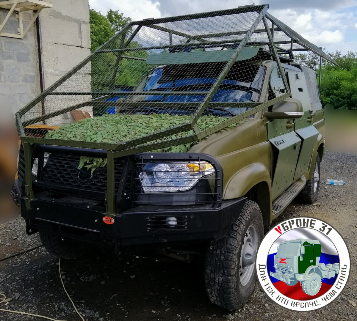 Những chiếc xe cũng được trang bị tấm ốp cửa bọc thép. Quân nhân Nga ở tuyến đầu được trang bị xe UAZ Patriot, được bảo vệ tốt hơn nhiều. Những người thợ trang bị cho xe các lớp lót cửa bọc thép và "lò nướng" chống máy bay không người lái.