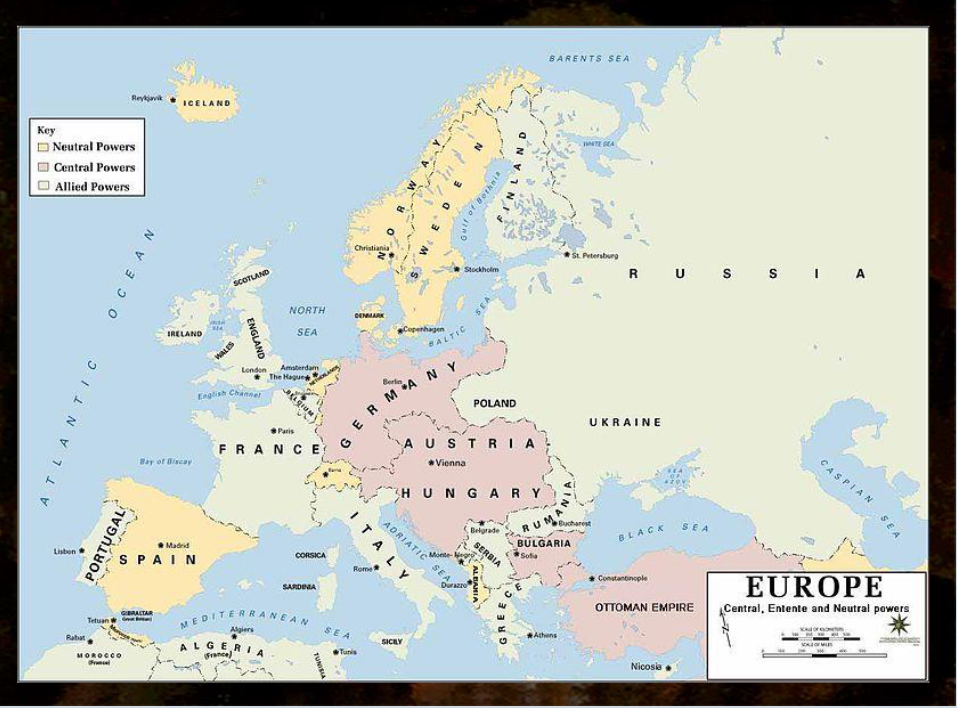 Châu Âu được chia thành hai nhóm quyền lực chính. Nhóm Đức-Áo-Ý đối đầu nhóm Pháp-Nga-ANH