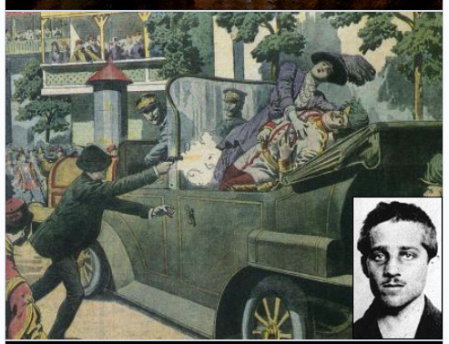 Vào ngày 28 tháng 6 năm 1914, người thừa kế ngai vàng Áo, Đại Công Tước Francis Ferdinand và Vợ là Sophia đã bị ám sát tại Sarajevo bởi Gavrilo Princip, người này là thành viên của Nhóm Dân tộc chủ nghĩa Serbia có tên gọi Bàn tay đen (Black Hand)