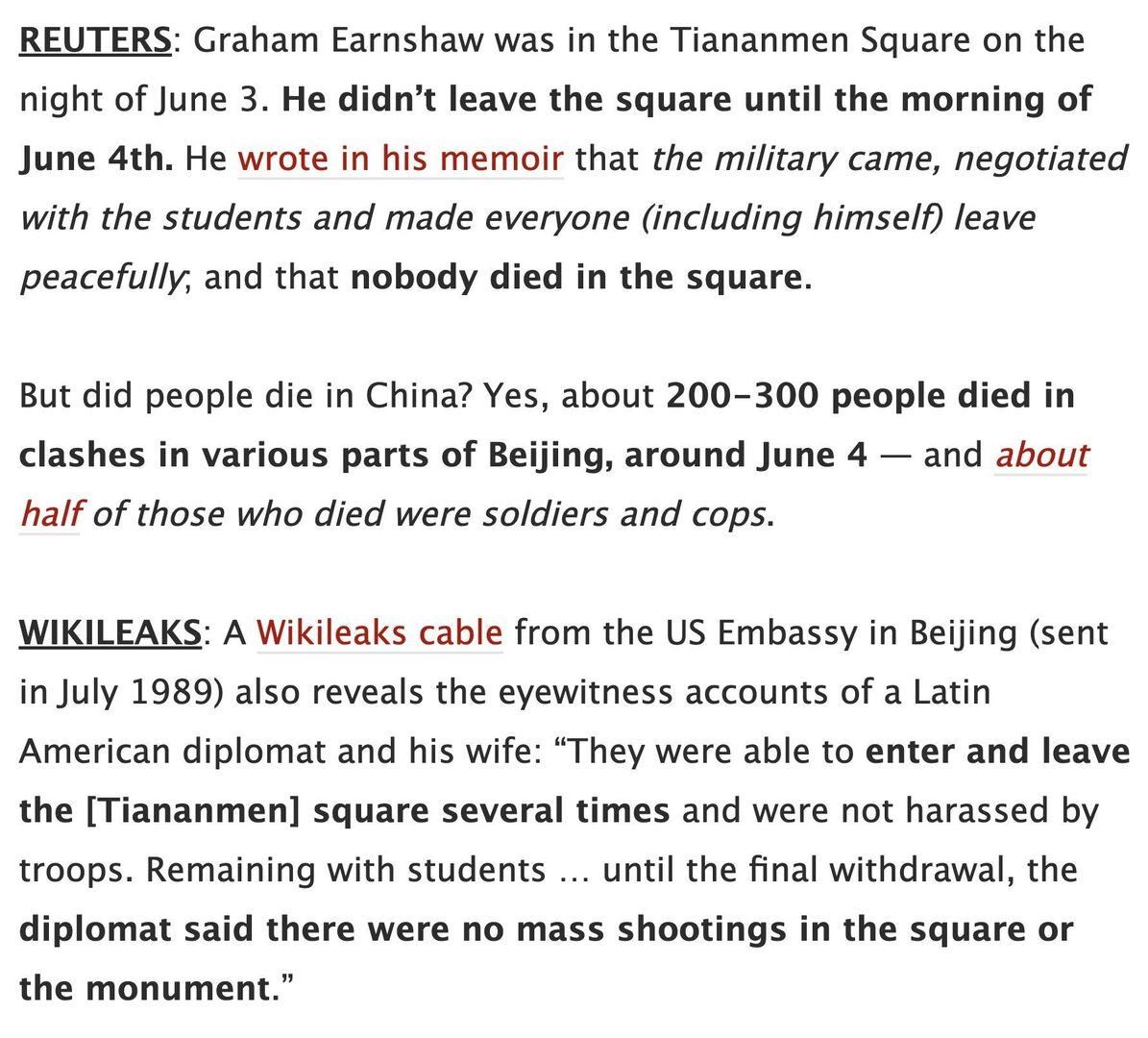 “Thảm sát Thiên An Môn” vẫn chỉ là 1 nửa sự thật chứ không phải nửa cái bánh mỳ. ==