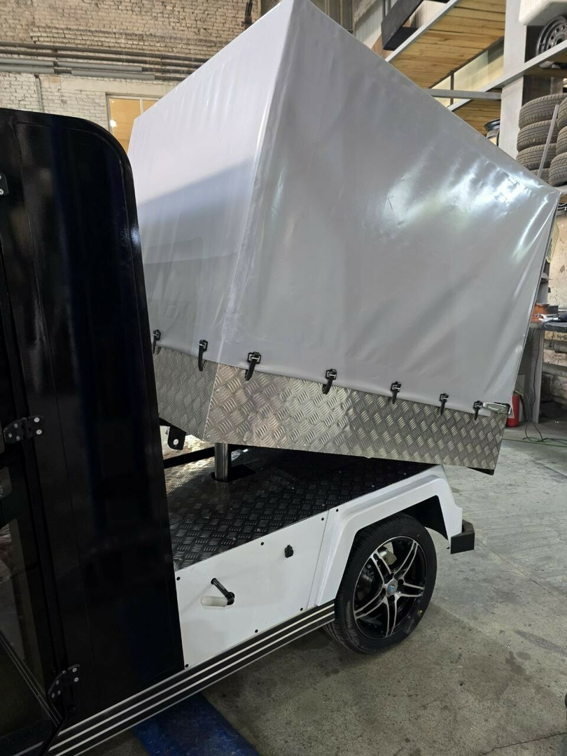 Thân xe được phủ một mái hiên có thể tháo rời, có nghĩa là có thể chất vật liệu mà không cần máy đào. Kích thước thân xe không có mái hiên là 1400×1200×250 mm.