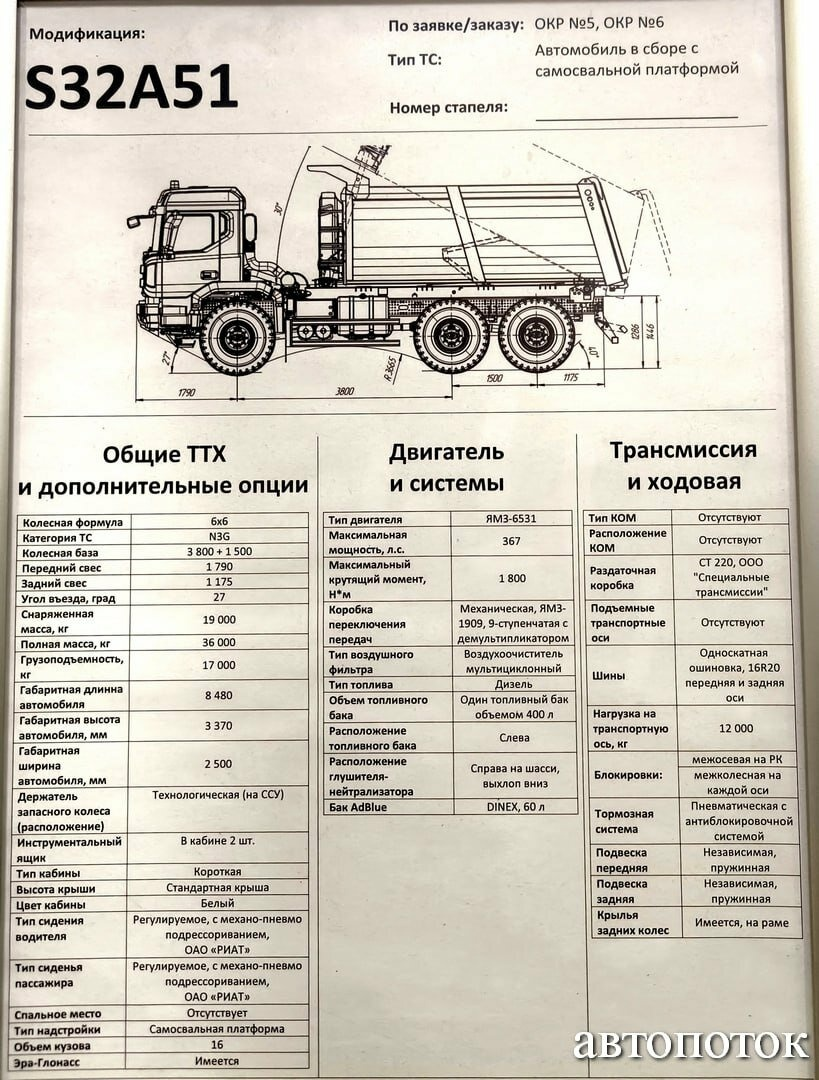 Theo kênh điện tín "Xe tải và mọi thứ", BAZ 6x6 được trang bị động cơ turbodiesel YaMZ-653.1 11,1 lít với công suất 500 mã lực và mô-men xoắn 2000 Nm. Hộp số là loại cơ khí, cũng của thương hiệu YaMZ.