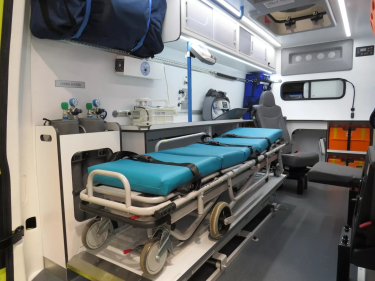 Khoang bệnh nhân được sản xuất với chất liệu nhôm (có khả năng chống mài mòn và chống bức xạ UV, mà đèn UV khử trùng không khí trên xe sau mỗi lần vận chuyển bệnh nhân). Trên xe có đầy đủ thiết bị y tế, hệ thống phân phối khí Nitơ y tế, máy sưởi đỗ xe tự động và máy điều hòa không khí, hệ thống thông gió cưỡng bức và đèn chiếu sáng bổ sung. Thậm chí còn có một bồn rửa có nguồn cung cấp nước sạch và ống thoát nước bẩn (không phải xả xuống đất mà vào một bể chứa đặc biệt).
