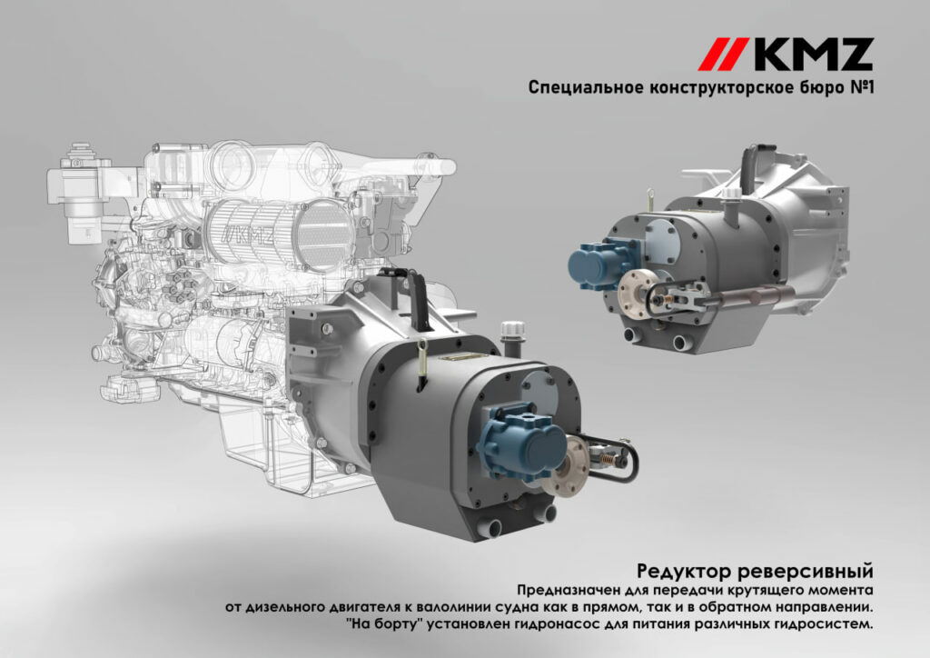 Hộp số hoạt động như một phần của cụm hộp số diesel trên tàu và được thiết kế để truyền mô-men xoắn từ động cơ diesel đến đường trục và bơm thủy lực. Nó có thể hoạt động ở ba chế độ: tiến, trung tính và lùi. Sự hiện diện của chế độ lùi cho phép hộp số được sử dụng trên các tàu có chân vịt, cột quay và các chân vịt khác không có chế độ lùi trong thiết kế, - kỹ sư thiết kế KMZ Sergey Zaitsev cho biết.