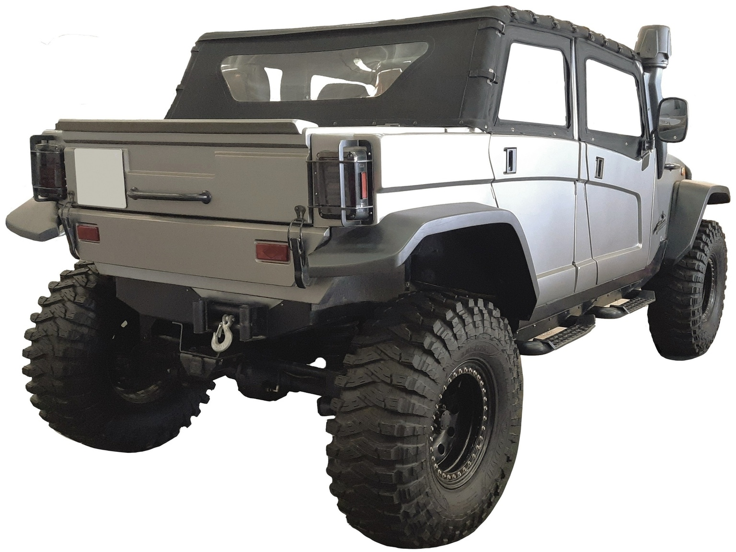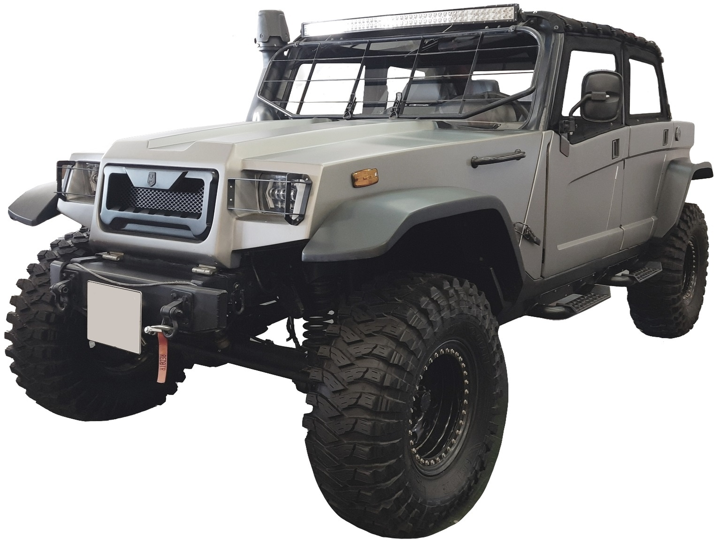 - Chiếc SUV hung dữ này được trang bị động cơ ZMZ Pro, được sử dụng trong xe UAZ. Cầu cổng IzhTech giúp tăng khoảng sáng gầm xe. Thân xe bốn cửa, có mui mềm và mui xe gập về phía trước.