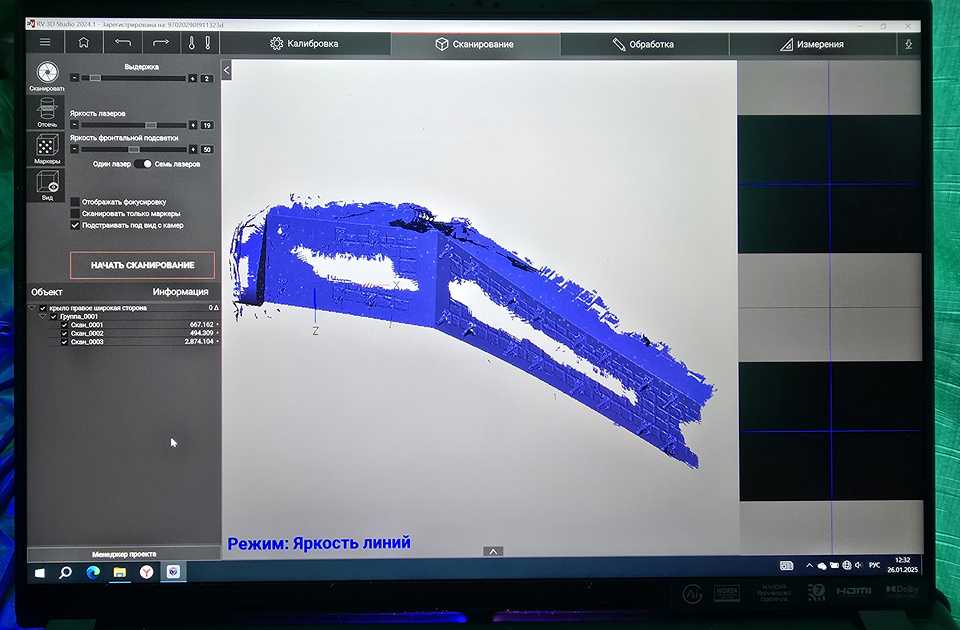 Giai đoạn đầu tiên của quá trình tái tạo là quét 3D thân tàu và cánh để tạo ra mô hình kỹ thuật số cơ bản của Buran. Chúng tôi rất may mắn khi được tham gia tích cực vào quá trình quét.