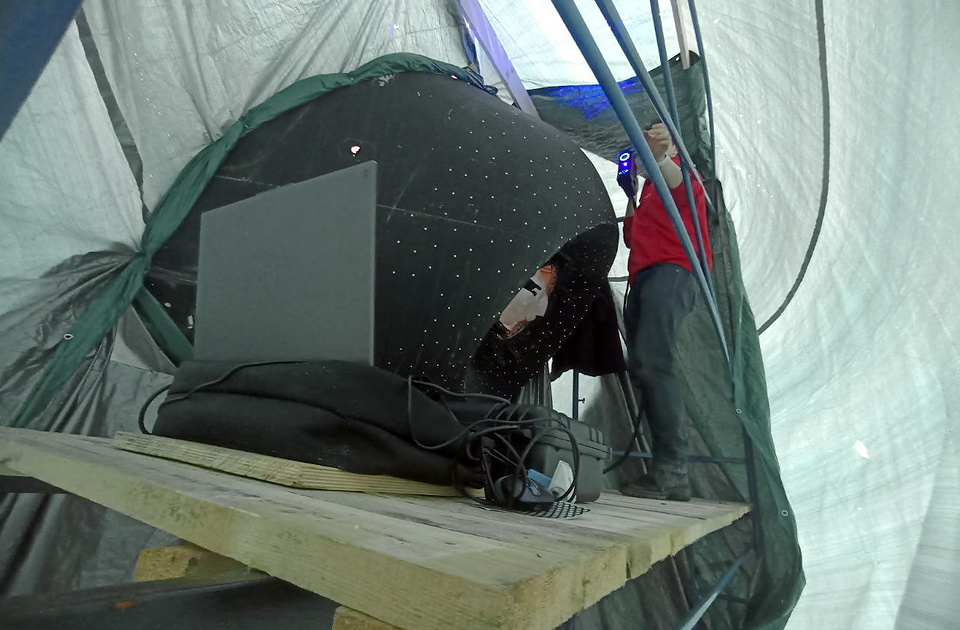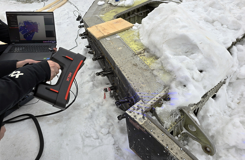 Bản thân quá trình quét mất hai ca làm việc đầy đủ, mặc dù thực tế là máy quét Helix cho thấy tốc độ số hóa ấn tượng, bất chấp băng giá. Vật thể lớn nhất cần quét là phần đuôi của thân máy bay, có kích thước khoảng 6x6 mét. Chúng tôi phải làm việc trên giàn giáo ba tầng.