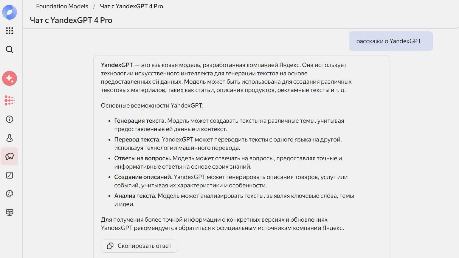 Đây là cách YaGPT tự mô tả Ảnh chụp màn hình: YandexGPT / Skillbox Media