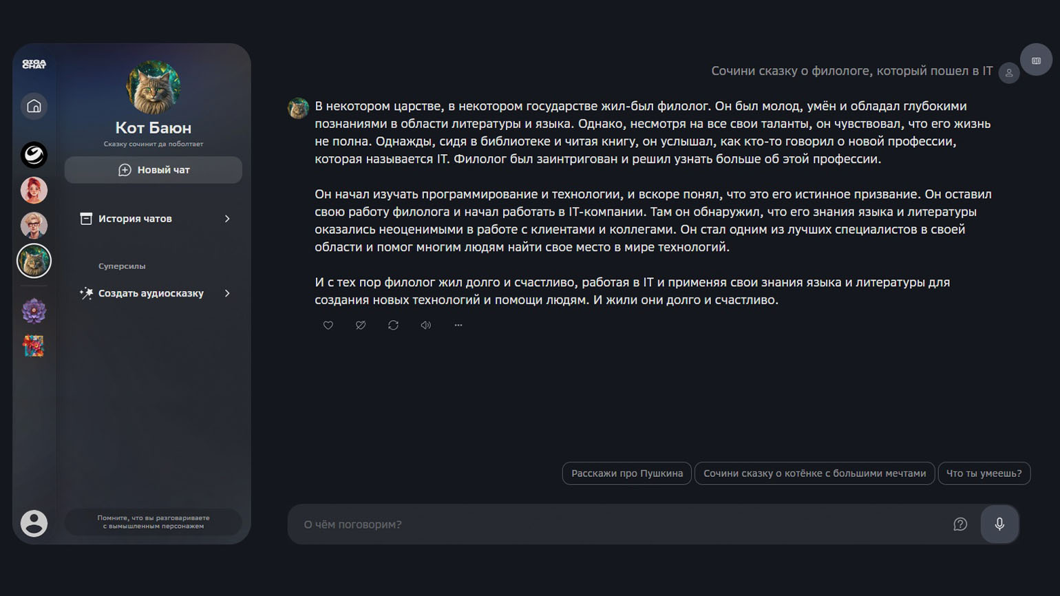 Một câu chuyện từ chú mèo Bayun Ảnh chụp màn hình: GigaChat / Skillbox Media