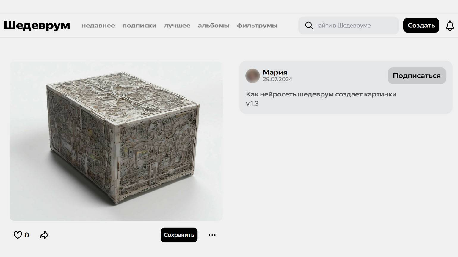 3. "MasterPiece" (hoặc Shedevroom) " Shedevroom " là dịch vụ tạo hình ảnh, được xây dựng trên cơ sở mạng nơ-ron YandexART. Ngoài hình ảnh, mô hình máy học có thể tạo video ngắn.
