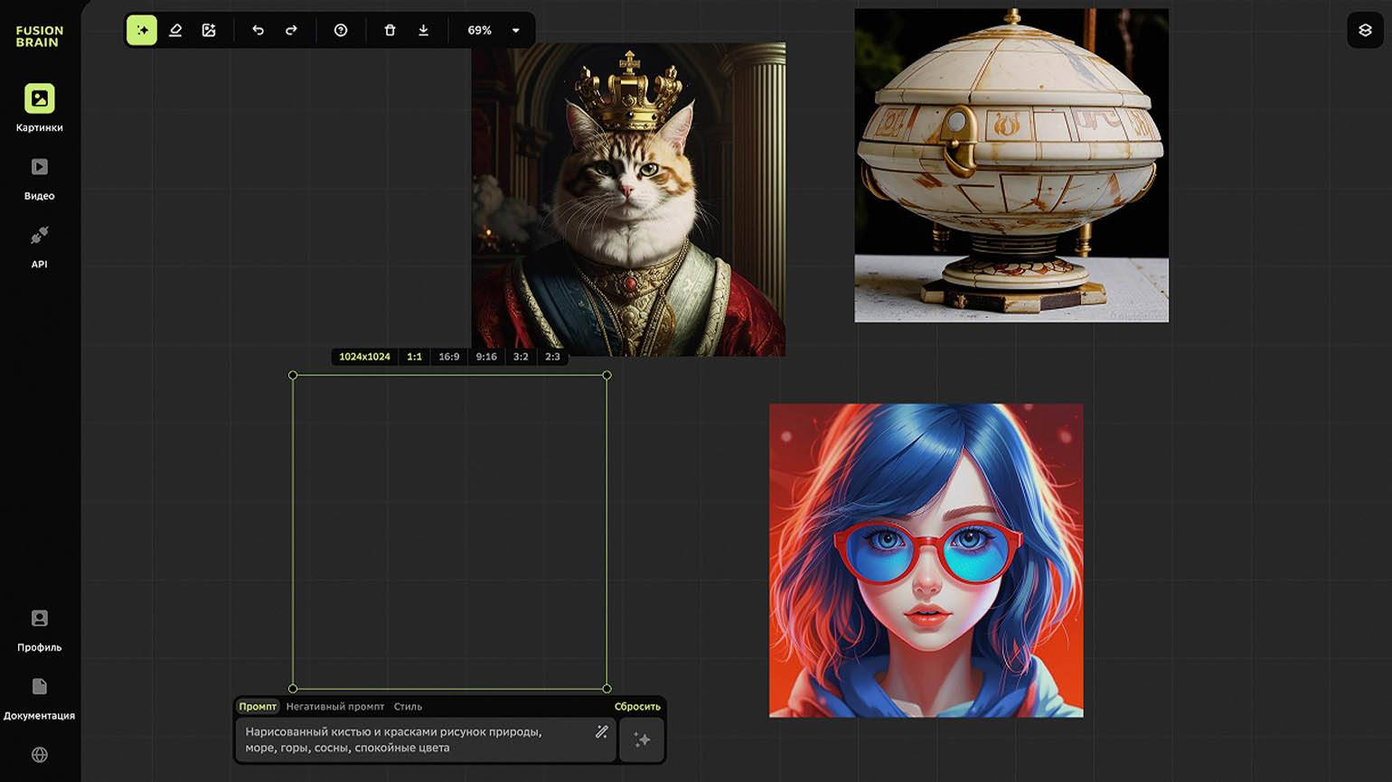 Để tạo nhanh Kandinsky, bạn có thể sử dụng bot telegram GigaChat. Nếu bạn muốn tạo hình ảnh phức tạp và kiểm soát toàn bộ quy trình, tốt hơn hết là sử dụng dịch vụ Fusion Brain. Dịch vụ này có các chức năng để làm việc với các lớp và điền vào các vùng trống.