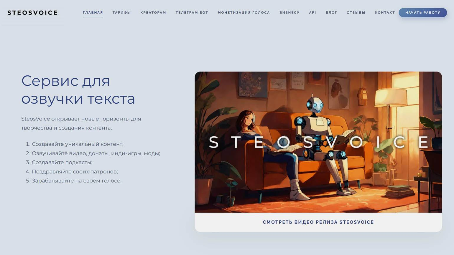 Công dụng: để lồng tiếng cho văn bản và bài thuyết trình. Chi phí: 1490 rúp mỗi tháng, có mức giá miễn phí. Ngôn ngữ: tiếng Nga. Truy cập: cần đăng ký.