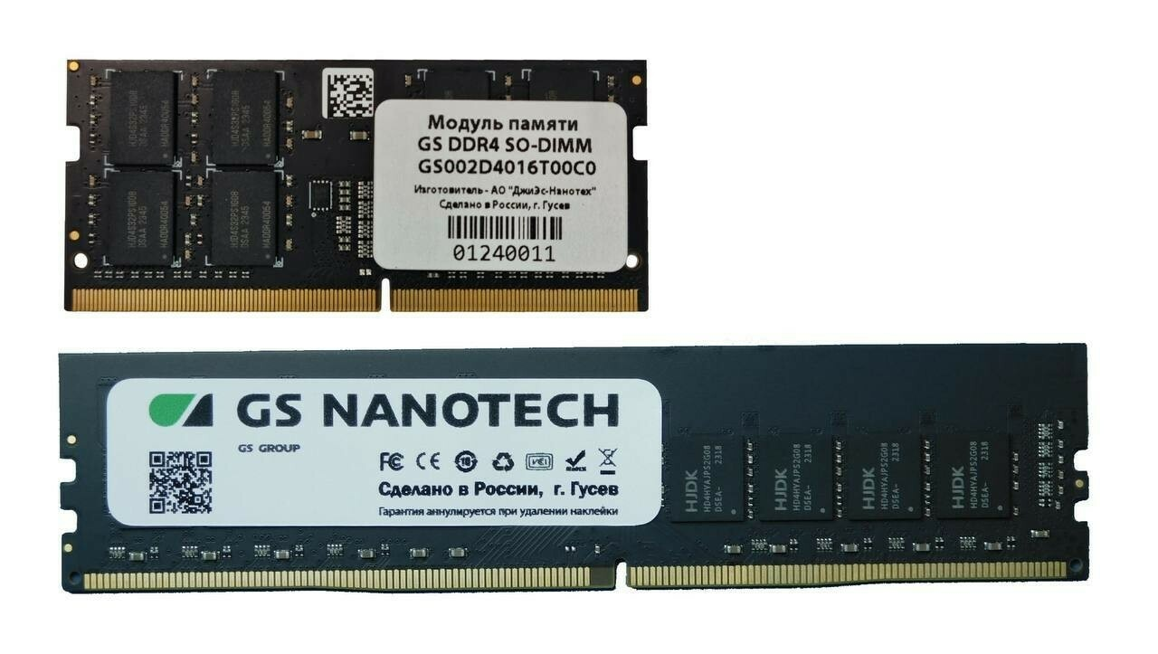 Mô-đun RAM DDR (Tốc độ dữ liệu kép) do GS Nanotech, một thành viên của Tập đoàn GS, sản xuất hiện đã được đưa vào danh sách sản phẩm công nghiệp của Bộ Công Thương Liên bang Nga. Theo kết quả kiểm tra, dòng sản phẩm này đạt 35 điểm. Yếu tố then chốt là việc sử dụng bo mạch in nội địa cấp chính xác thứ 6, được sản xuất tại nhà máy ở Gusev. Việc phát triển, thử nghiệm và sản xuất DDR được thực hiện trên cơ sở GS Nanotech.