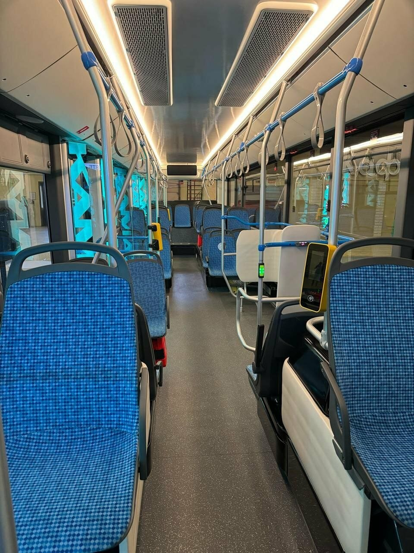 Mặt sàn xe vẫn thấp. Xe buýt điện được thiết kế để chở tối đa 85 người (số ghế là 35). Bố trí cabin đã được tối ưu hóa - khu vực chứa đồ được mở rộng, khoang hành lý được bổ sung ở phía trước.