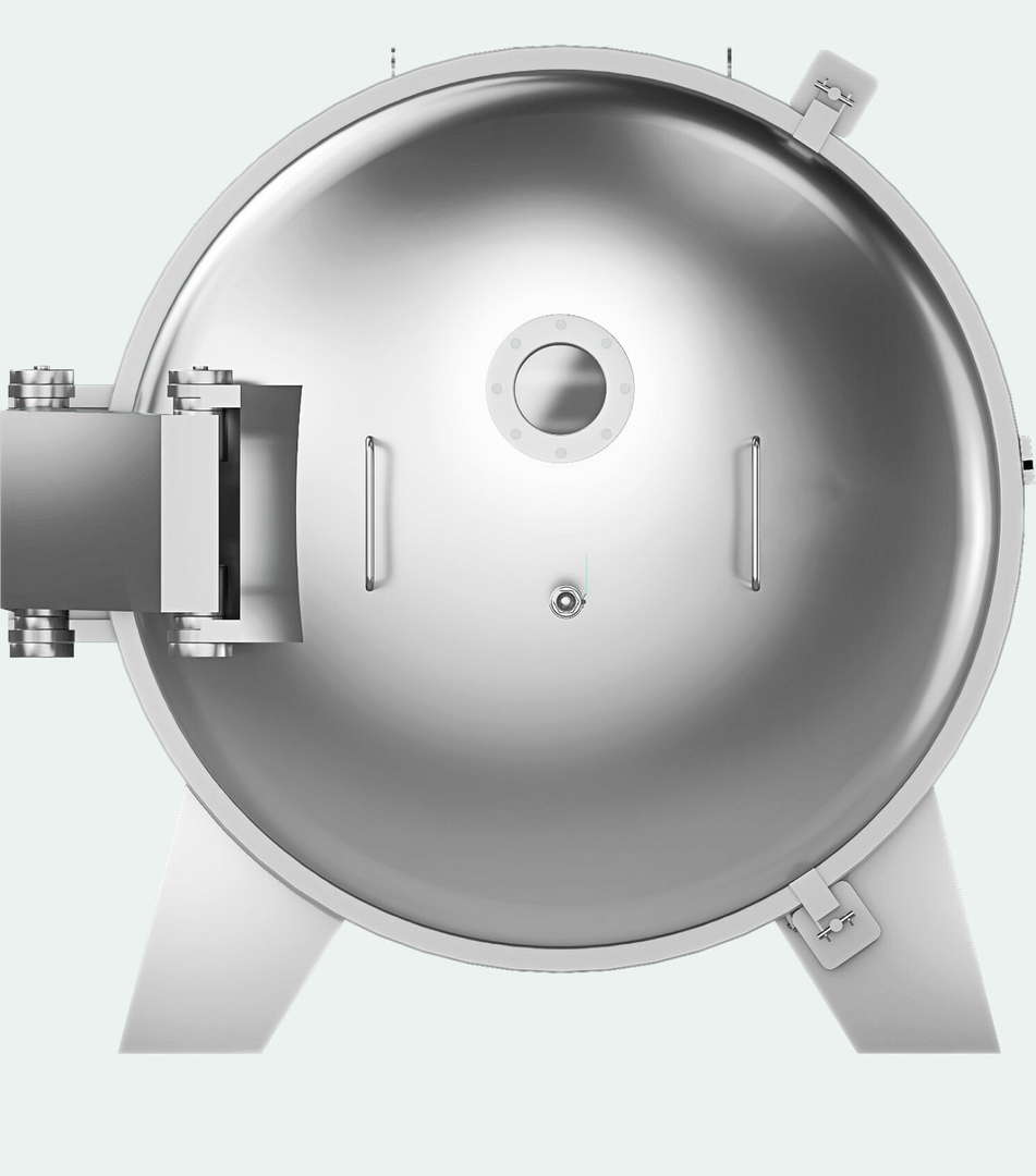 Máy được trang bị 5 m² kệ được làm nóng đến 100°C, và nhiệt độ của bộ phận tách thăng hoa đạt -45°C. Áp suất trong buồng là 50 Pascal. Thiết bị được trang bị 8 kệ gia nhiệt, mỗi kệ chứa 4 khay làm bằng thép không gỉ an toàn thực phẩm, kích thước 400x400 mm.
