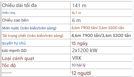 Các đặc điểm kỹ thuật chính của Dự án 00216M:
