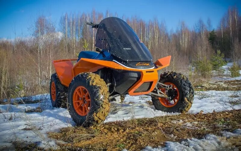 5. Công ty Severny Tekhnopark ở Cherepovets đã phát triển xe địa hình-biến hình KwadrX, có thể được sử dụng như một chiếc ATV vào mùa hè và như một chiếc xe trượt tuyết vào mùa đông. Nền tảng đa năng cho phép bạn thay đổi hệ thống treo độc lập phía trước và trục sau truyền động xích thành ván trượt tuyết và bánh xích.