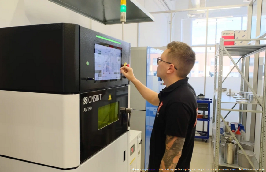 Hình ảnh trong bài này chính là máy in 3D Onsint AM150, một loại máy in 3D công nghiệp của Nga, do công ty ONSINT sản xuất. Đây là một máy in sử dụng công nghệ SLM (Selective Laser Melting – nung chảy chọn lọc bằng laser), chuyên dùng để in các chi tiết kim loại có độ chính xác cao. Dòng AM150 hướng tới sản xuất nhỏ/lab, in các hợp kim như thép, nhôm, titan trong môi trường khí trơ. Vật liệu in sử dụng bột kim loại như thép không gỉ, hợp kim titan, nhôm, cobalt-chrome, hợp kim niken, v.v. Máy in 3D này được sử dụng trong sản xuất công nghiệp để gia công các chi tiết kim loại chính xác cao. Nó cũng được dùng trong y tế để sản xuất thiết bị y tế, cấy ghép. Trong giáo dục và nghiên cứu, nó cũng được dùng trong đào tạo và thử nghiệm vật liệu mới.