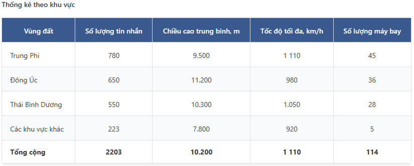 Vào ngày 10 tháng 10 năm 2025, trong bốn quỹ đạo, vệ tinh đã xử lý 2.203 tin nhắn từ 114 máy bay từ 32 quốc gia. Phần lớn các gói tin được ghi lại trên bầu trời Trung Phi, Đông Úc và Thái Bình Dương. Tốc độ tối đa mà máy bay ghi nhận được là 1.110 km/h. Dưới đây là bảng trực quan về phân phối tin nhắn theo khu vực: