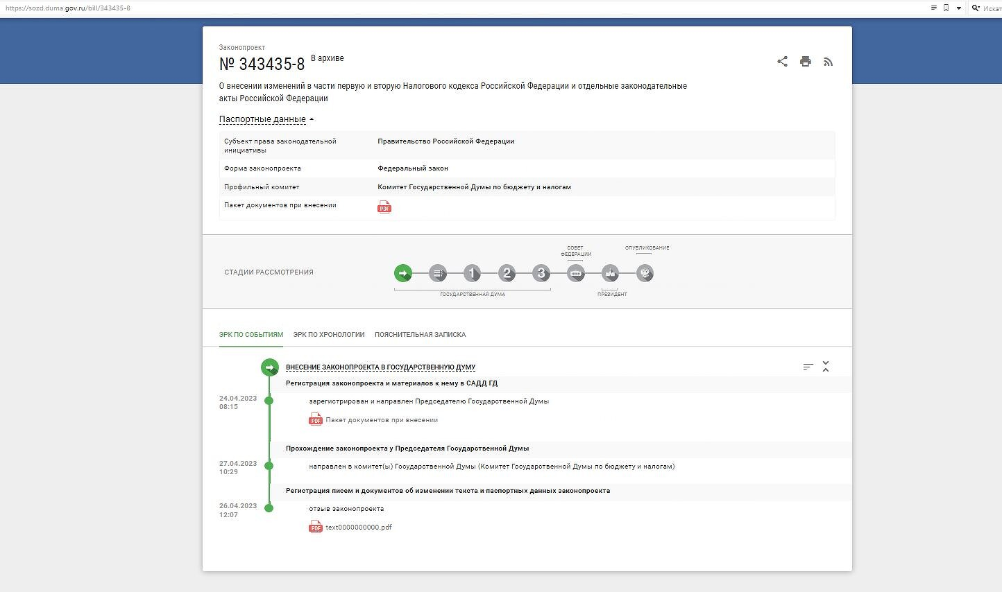 Dự luật tăng thuế thu nhập cá nhân đối với những người lao động ở xa rời Nga đã được đệ trình lên Duma Quốc gia vào ngày 24 tháng 4 năm 2023. Hai ngày sau, dự luật này đã bị rút lại.