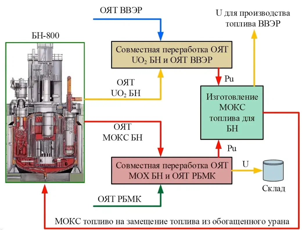 Đồng thời, mọi thứ có một chút khác biệt đối với Liên Xô Tinh gọn. Năm 1973, BN-350 được ra mắt - lò phản ứng năng lượng neutron nhanh đầu tiên có chất làm mát natri. Tiếp theo là BN-600. Và sau 35 năm đằng đẵng, năm 2015, sự ra mắt của BN-800 đã đem lại hy vọng mới rằng sự sống vẫn le lói trong dự án khép kín chu trình nhiên liệu hạt nhân. Và năm 2022, vượt qua chặng đường 70 năm, giấc mơ xanh của các nhà khoa học hạt nhân Liên Xô đã trở thành hiện thực:
