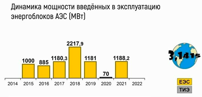 Kể từ năm 2014, tại 4 NPP thuộc Hệ thống năng lượng thống nhất của Nga ( UES ), bảy tổ máy đã được đưa vào vận hành thương mại: